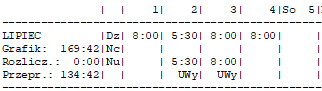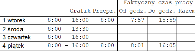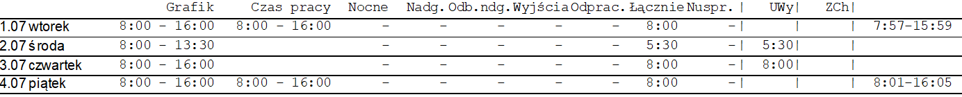 Program dzieli czas pracy w miesiącu na okresy, wyłączając z niego nieobecności (wg kategorii ze słownika):