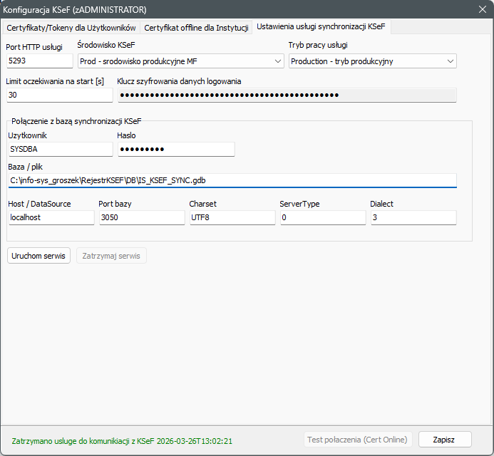 Usługa synchronizacji korzysta z osobnej bazy danych Firebird.