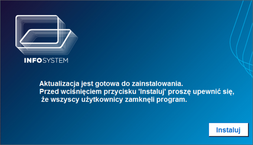 Aktualizacje dostarczane są z serwerów firmy INFO-SYSTEM. Aplikacja zapewnia bezpieczeństwo procesu aktualizacji — chroni przed błędami i umożliwia cofnięcie zmian w przypadku niepowodzenia.