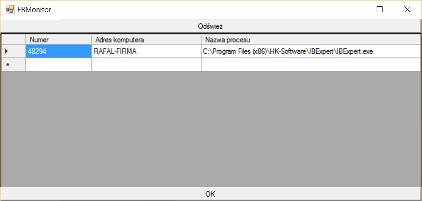 - 7.1. Jeśli program wykryje zalogowanych użytkowników, zostanie wyświetlone okno z ich listą. Po kliknięciu przycisku OK, użytkownicy zostaną odłączeni od bazy,